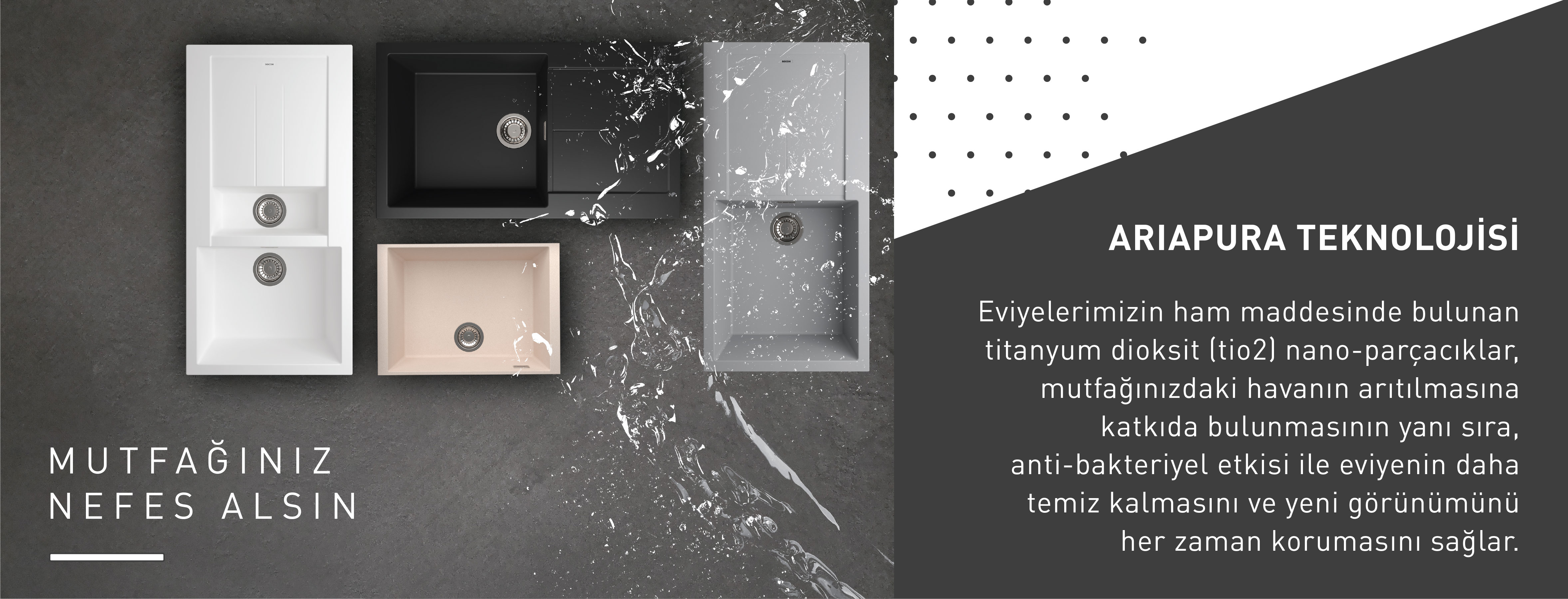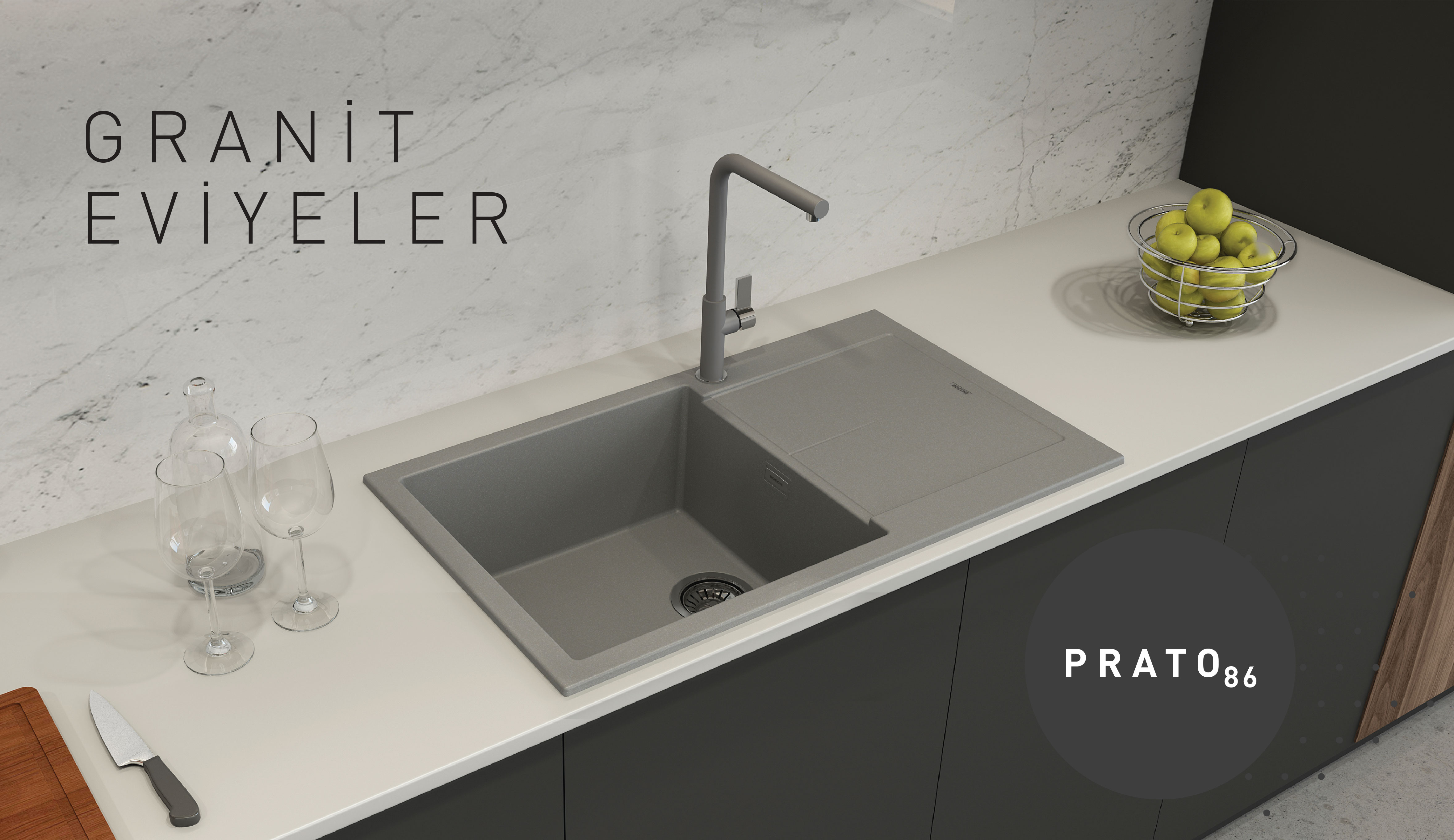 ötesinde bir mutfak deneyimine davet ediyor. Granit eviyeler; antibakteriyel, kirlilik önleyici ve temizlenmesini